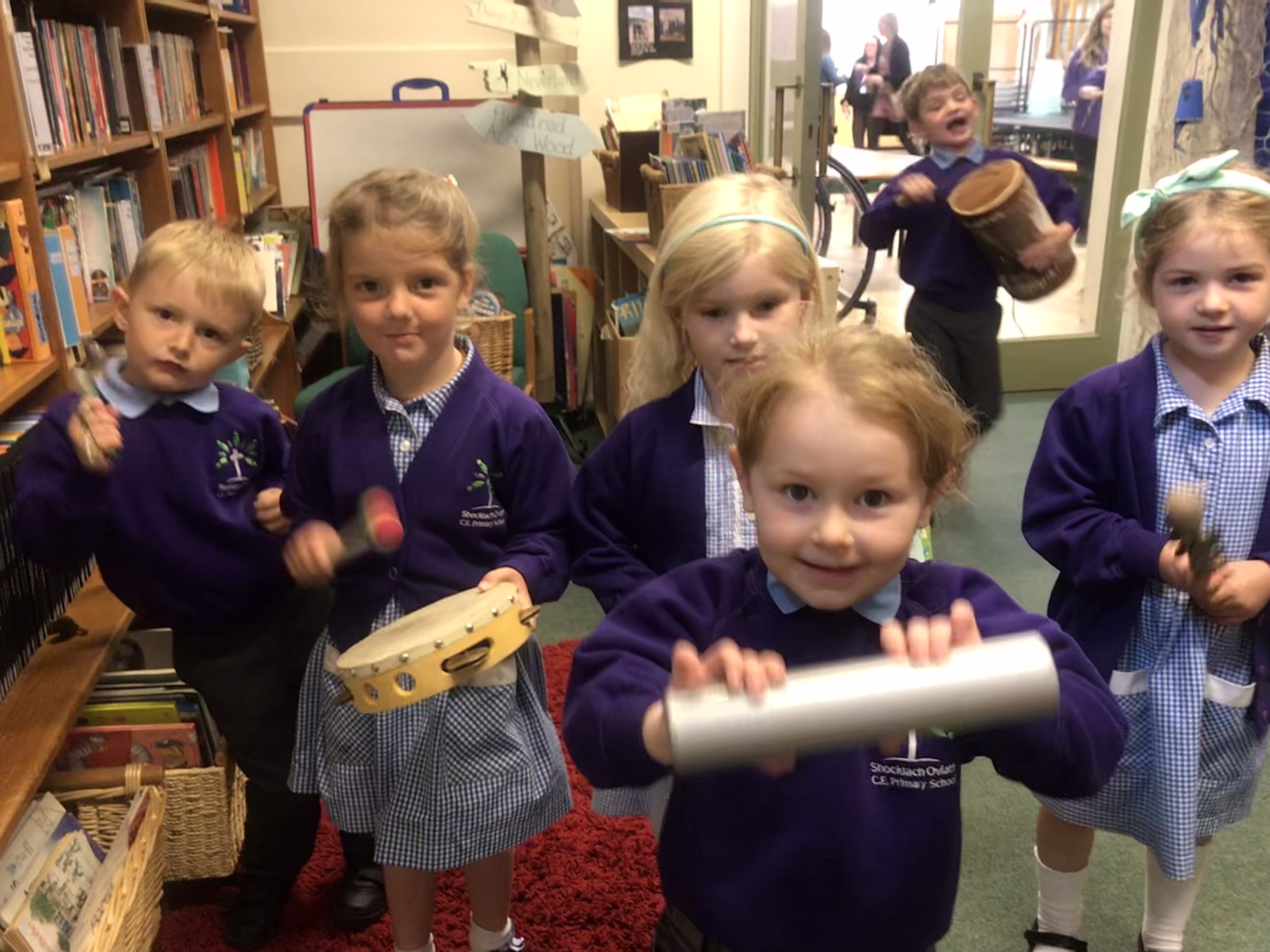 Music plays a big part in Shocklach school life. Children in Foxes class have free access to a variety of musical instruments to play and they enjoy learning to sing lots of different songs and rhymes old and new. The woodland classroom is a great place to make music and children regularly make their own natural instruments. Squirrels take part in AmaSing which gets us involved in shows and music workshops with other schools, both face to face and online.
